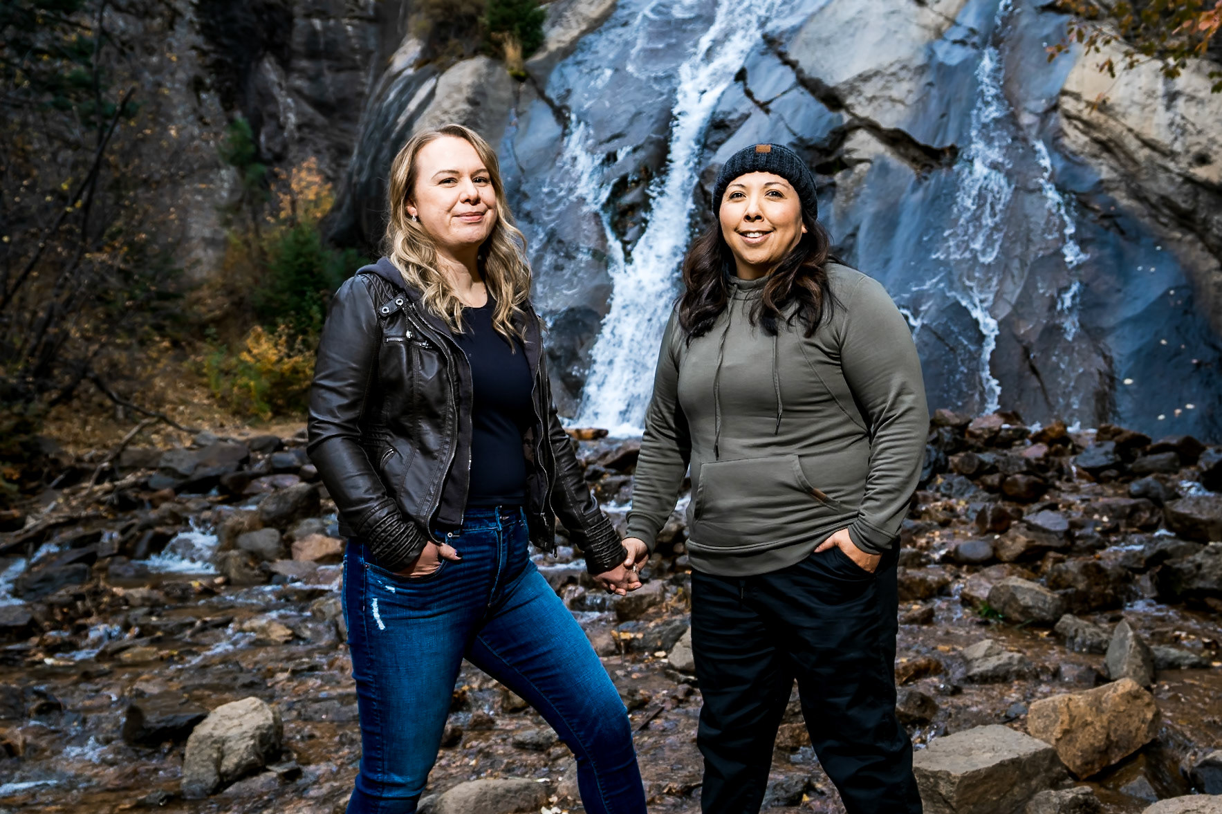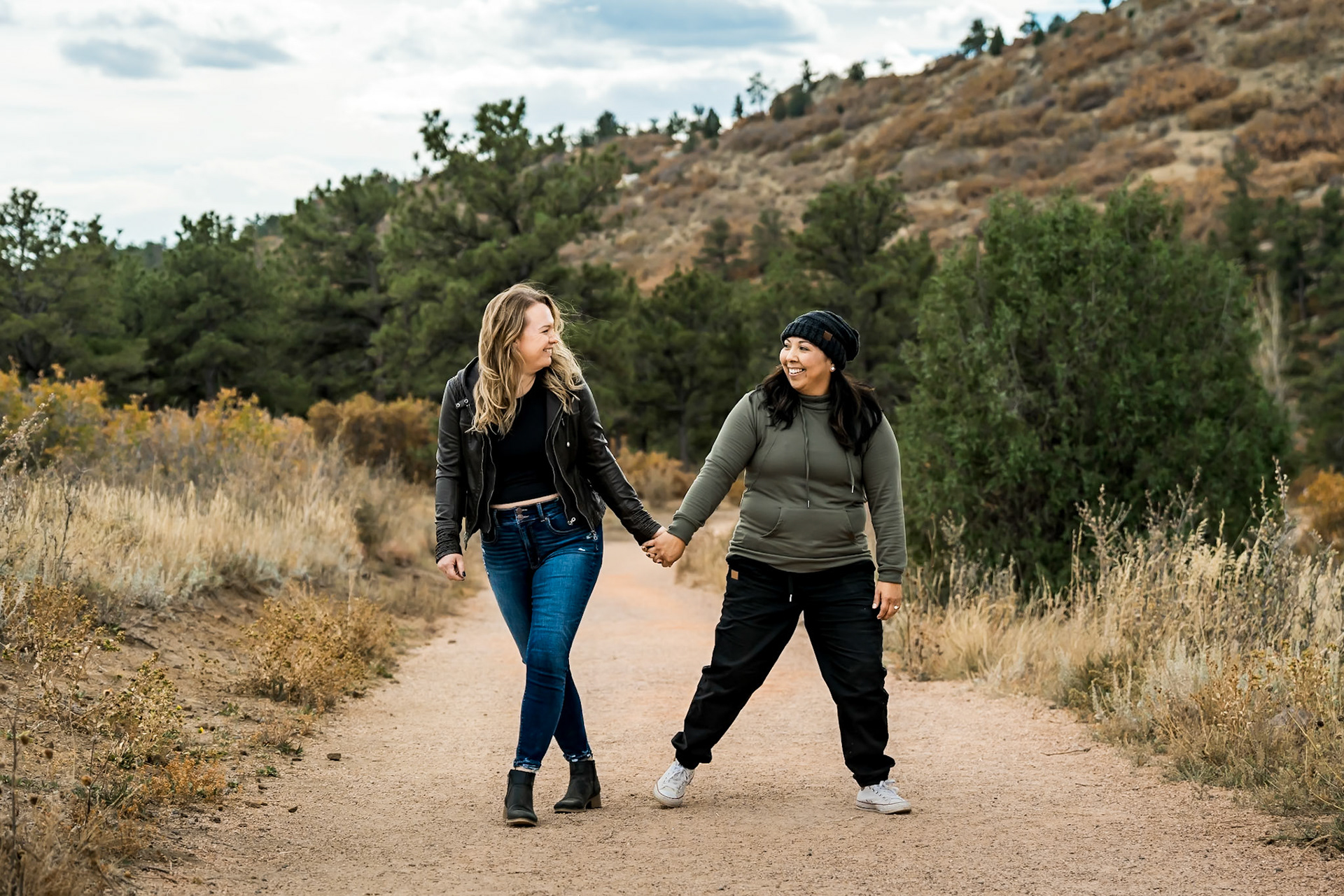 LGBTQ Adventure engagement session in Canon City Colorado. Photos at trailheads, a winery, and the Royal Gorge.