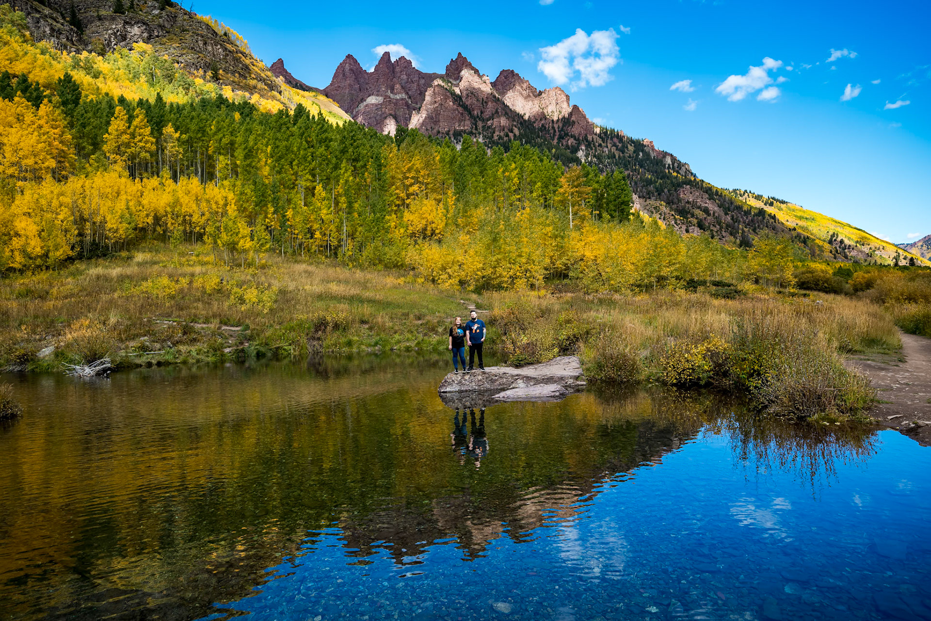 Bold and vibrant autumn engagement portrait session in Rocky Mountain National Park, Colorado by Bonnie Photo