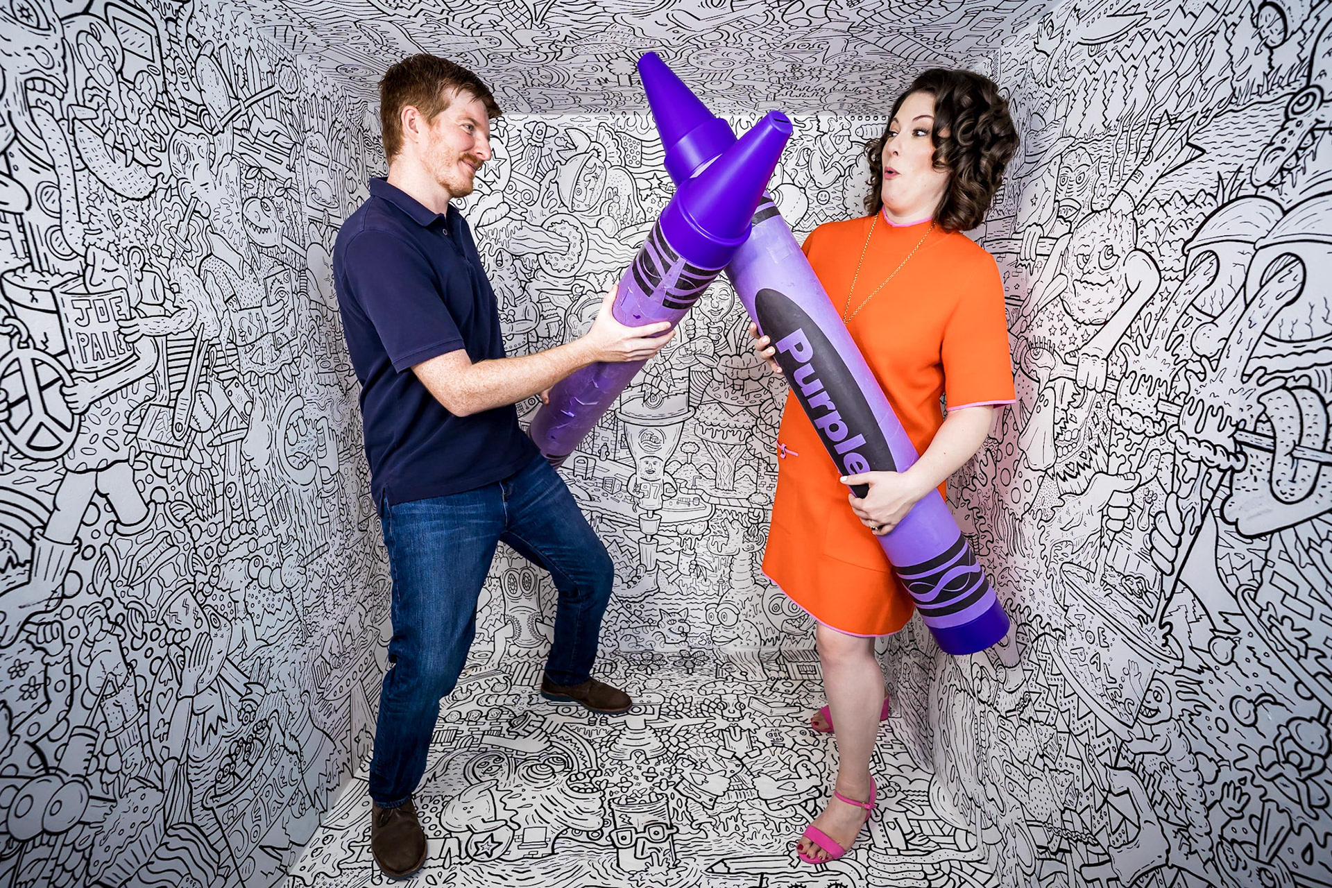 Bold, colorful ngagement session at the Denver Selfie Museum and Cheeseman Park in Denver Colorado.