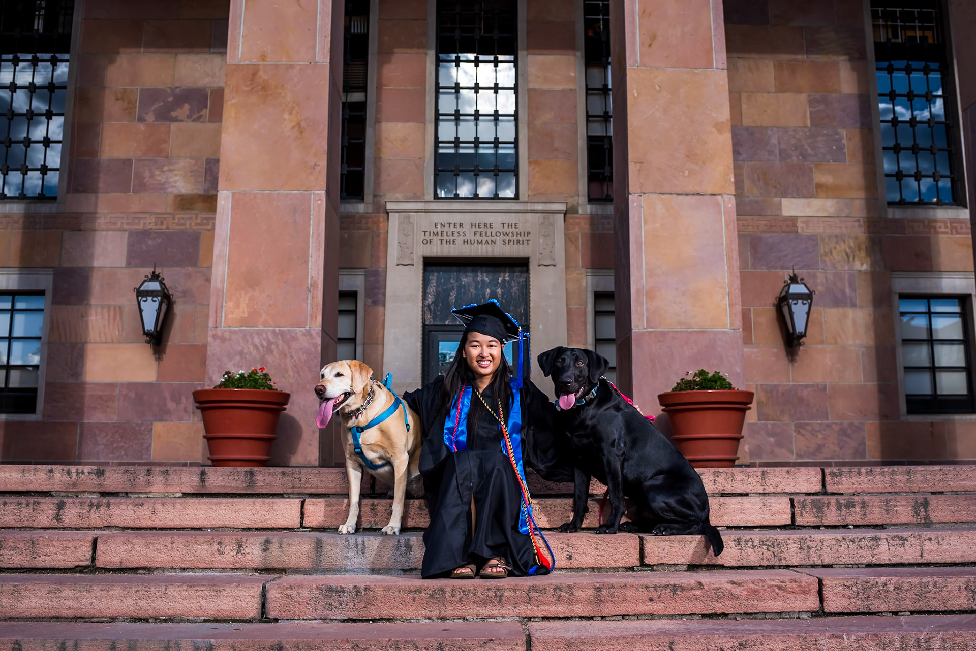 Graduation portraits for a breast cancer survivor at Metro State University in Denver, Colorado.