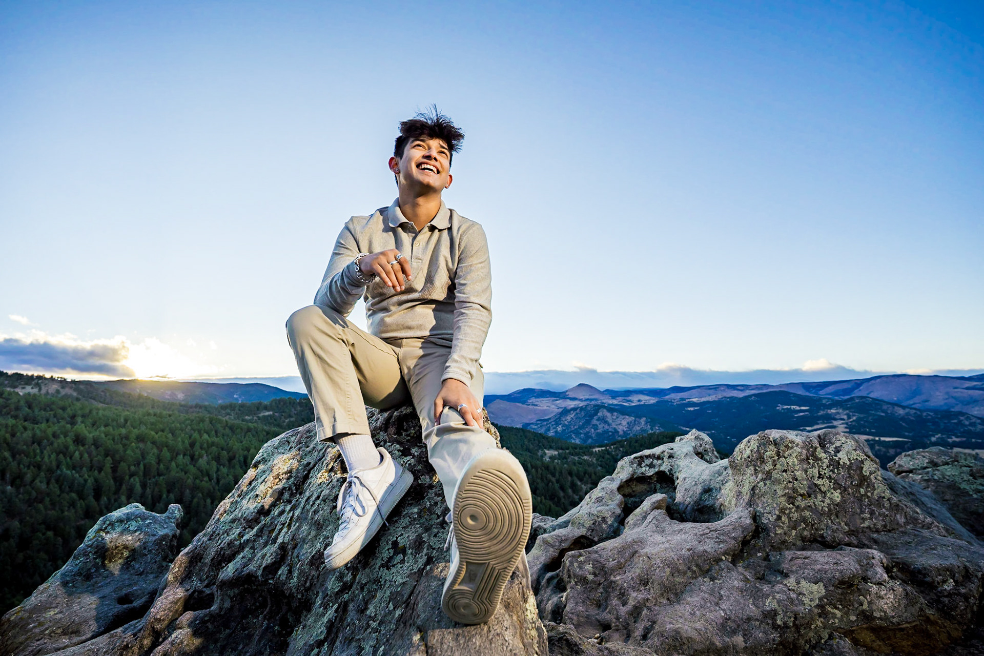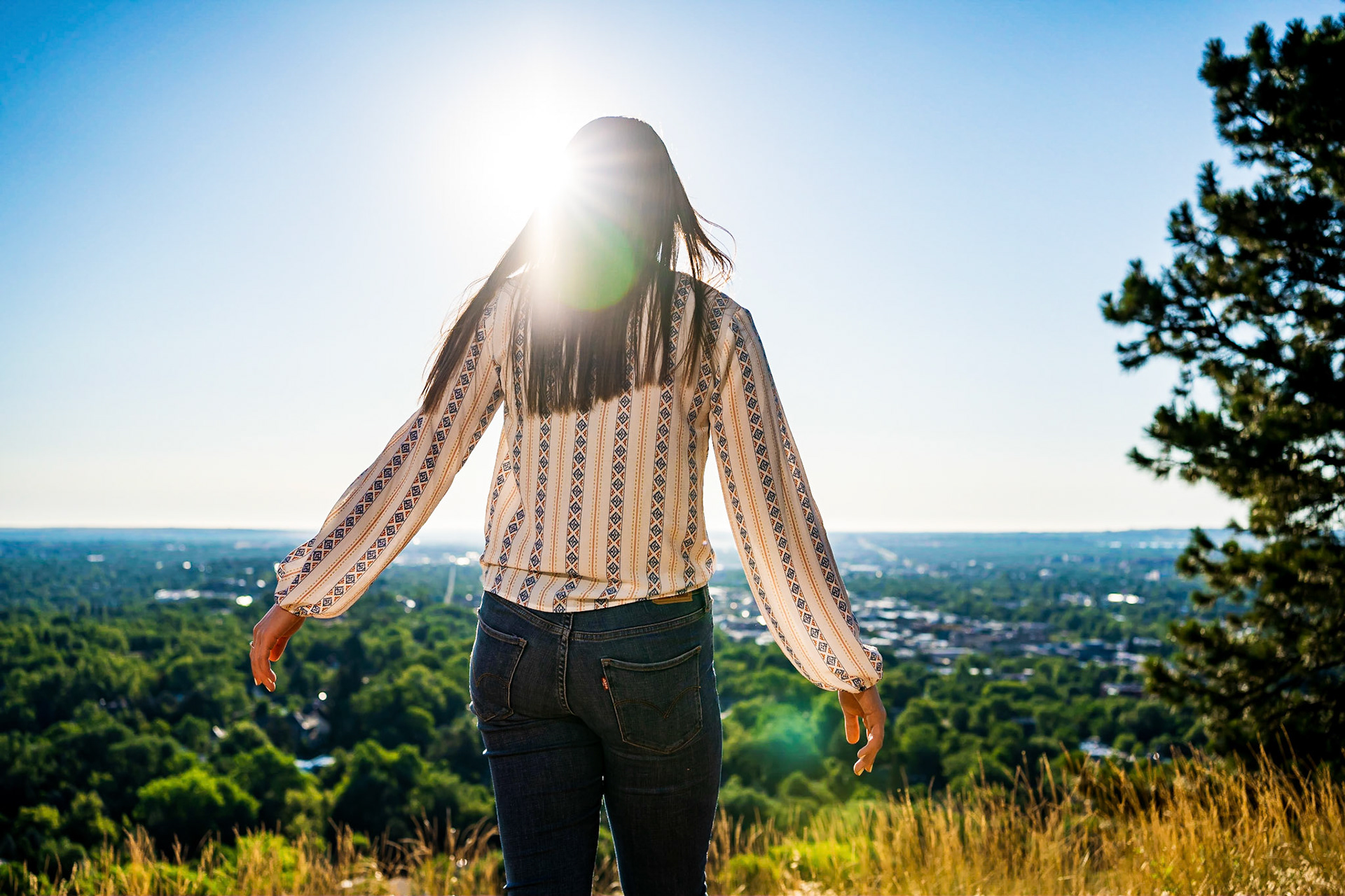 Fun, easy, and colorful high school senior portraits at Lost Gulch Overlook in Boulder, Colorado